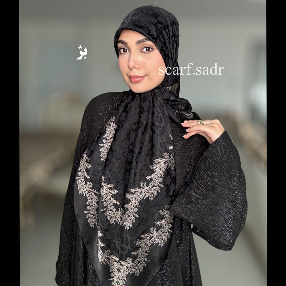 روسری حریر دووره کاردیون حاشیه گل